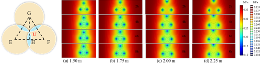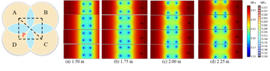图21 不同间距下“三角形”钻孔瓦斯压力云图