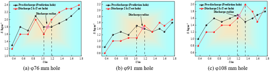钻孔排放半径是矿井瓦斯防治的一项关键技术参数,在超前排放钻孔应用过程中,钻孔内瓦斯渗流特性至关重要。基于此,采用有限元分析软件,构建了钻孔瓦斯排放流-固耦合模型,探究了排放时间、钻孔孔径、煤层渗透率对钻孔周围瓦斯渗流特性以及排放半径的影响规律,在祁东煤矿开展了现场验证,对比了不同布孔方式的瓦斯排放效果。研究结果表明:钻孔排放时周围瓦斯压力呈椭圆形分布,随着排放时间的延长,瓦斯压力呈衰减趋势;排放半径与排放时间呈正相关,其变化满足幂函数关系;相同排放时间下,排放半径随钻孔孔径呈指数形式增长,但在排放后期钻孔孔径对瓦斯排放半径的影响存在局限性;随着钻孔持续排放,煤层渗透率越高其瓦斯压力下降速率越快,排放半径随煤层渗透率呈线性增长的趋势;在煤层渗透率较高的情况下,即使排放时间短,钻孔也能取得较好的瓦斯排放效果;将祁东煤矿现场试验结果与数值模拟结果相比较,有效排放半径与排放时间呈正相关,且有效排放半径随着钻孔孔径扩大而增加,符合煤层钻孔瓦斯排放半径的变化规律;钻孔布置间距越大,瓦斯排放达到安全标准的时间越长;当瓦斯排放时间较短时,可优先选择“三角形”布孔方式。研究结果为工作面局部防突工作奠定理论基础。